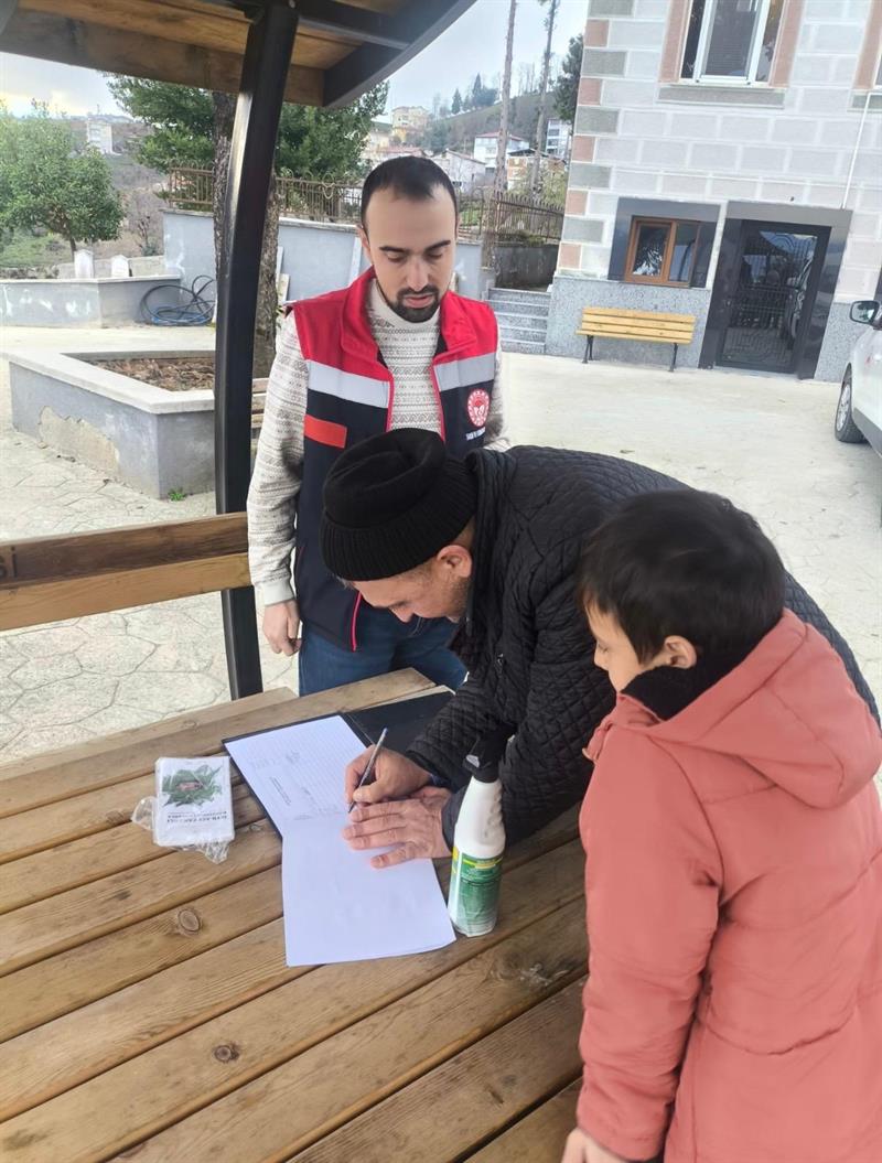 Düzenlenen bilgilendirme toplantı programları sonunda Kahverengi Kokarca kışlak mücadelesinde kullanılmak üzere üreticilerimize Sağlık Bakanlığınca ruhsatlandırılmış olan biyosidal ürün teslimi yapılmaktadır.
