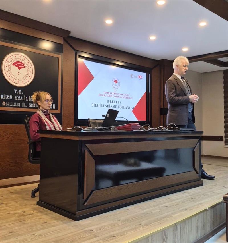 İl Tarım ve Orman Müdürü Murat GENC yapmış olduğu konuşmada; B-Reçete Sistemi ile ilgili olarak üreticilerimize ve bayilerimize yönelik bilgilendirme ve eğitim çalışmalarına başlandığını belirterek, B-Reçete Sistemi ile bitki koruma ürünlerinin reçeteli şekilde kullanılmasıyla kayıt altına alınacağını ve bu sayede geriye dönük izlenebilirliğin sağlanabileceğini vurguladı. Reçete ile bitki koruma ürünlerinin satışının zirai ilaçların hatalı, bilinçsiz ve aşırı kullanımını önlemek, pestisit kalıntısını azaltmak ve çevre ile insan sağlığının korunması açısından önemli olduğunu dile getirdi. Sistemin 4 pilot ilde (Ankara, Samsun, Mersin ve Kırklareli) uygulanmaya başlandığını, 01.07.2026 tarihinden itibaren tüm illerde aktif hale geleceğini söyledi.