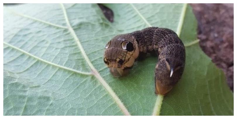 Türkiye'de nadir görülen Fil Şahin Güvesi larvası deilephila elpenor, sphingidae ailesinde bir güvedir. Ortak adı, tırtılın filin gövdesine benzemesinden türetilmiştir. Orta Avrupa'da en yaygın olanıdır. Kendine özgü zeytin ve pembe renklendirmesi, onu kendi yelpazesinde en tanınabilir güvelerden biri yapar. Tehlike durumunda, vücudun bir bölümünü gözlerle şişirebilir. Kafasını içeri çeker, ön bacaklarını yüzeyden koparır. Aynı zamanda bir yılan gibi olur. Vücudun etkileyici büyüklüğü göz önüne alındığında, kuşlar gibi düşmanlar savaşmamayı tercih eder.