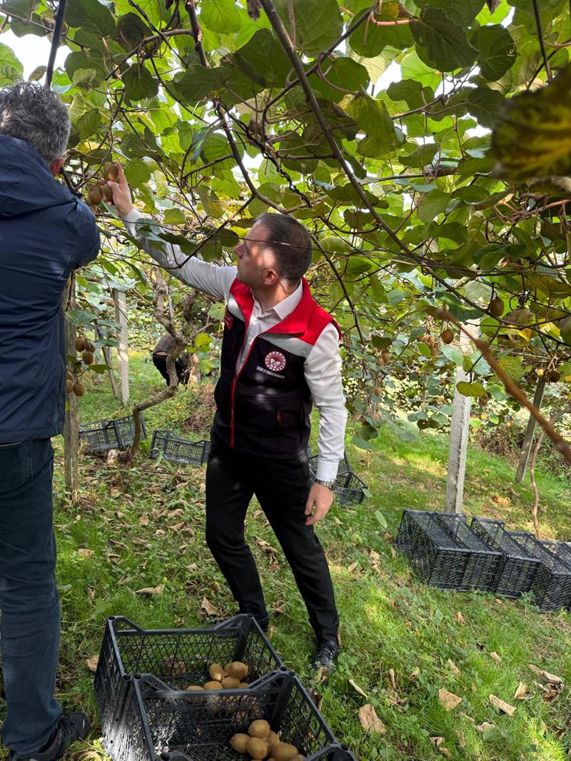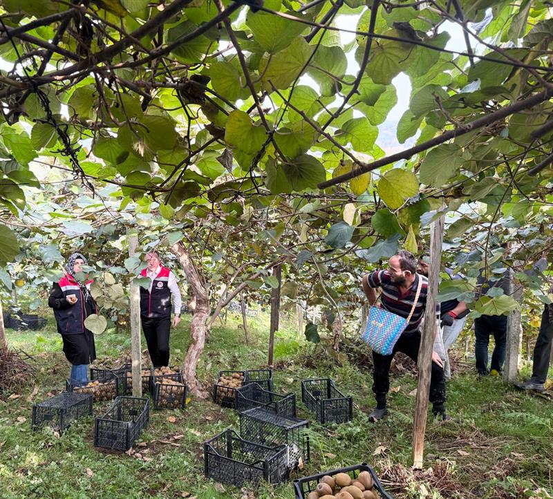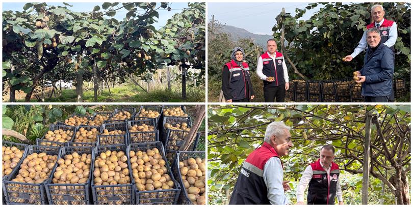 Rize ilimizde 2025 yılı üretim dönemi kivi hasadı başladı. İl Tarım ve Orman Müdürlüğümüz teknik personelleri tarafından merkez ve ilçelerde bulunan kivi bahçelerinde hasat kontrolleri devam etmekte olup, Fındıklı ilçesinde bulunan organik kivi bahçesinde, Bitkisel Üretim ve Bitki Sağlığı Şube Müdürü Demirhan HUT, Fındıklı İlçe Tarım ve Orman Müdürü Özcan KARA ve teknik personeller, üreticiler tarafından gerçekleştirilen kivi hasadına eşlik ederek hasat ile ilgili kontrolleri gerçekleştirdiler.