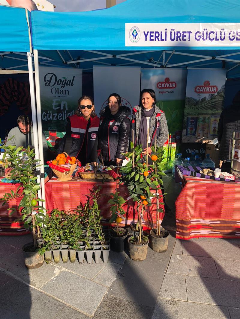 15 Temmuz Demokrasi ve Cumhuriyet Meydanında düzenlenen etkinlik, Yerli üretimin önemine dikkat çekmek, tasarruf bilincini artırmak ve kadın emeğini görünür kılmak amacıyla gerçekleştirilerek bir farkındalık oluşturuldu. İl Müdürlüğü olarak etkinliğe katılım sağlayarak stantta yerimizi aldık. İlimiz Anzer yaylasında üretilen Coğrafi işaretli Anzer Balı, Rize mandalinası ve kivisini ayrıca yerel limon fidanlarını tanıttık.